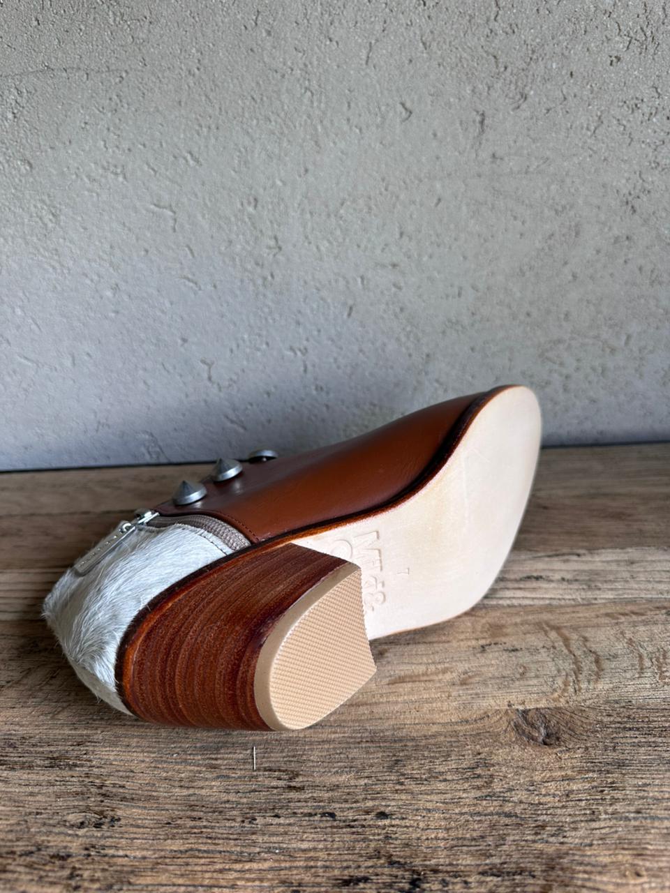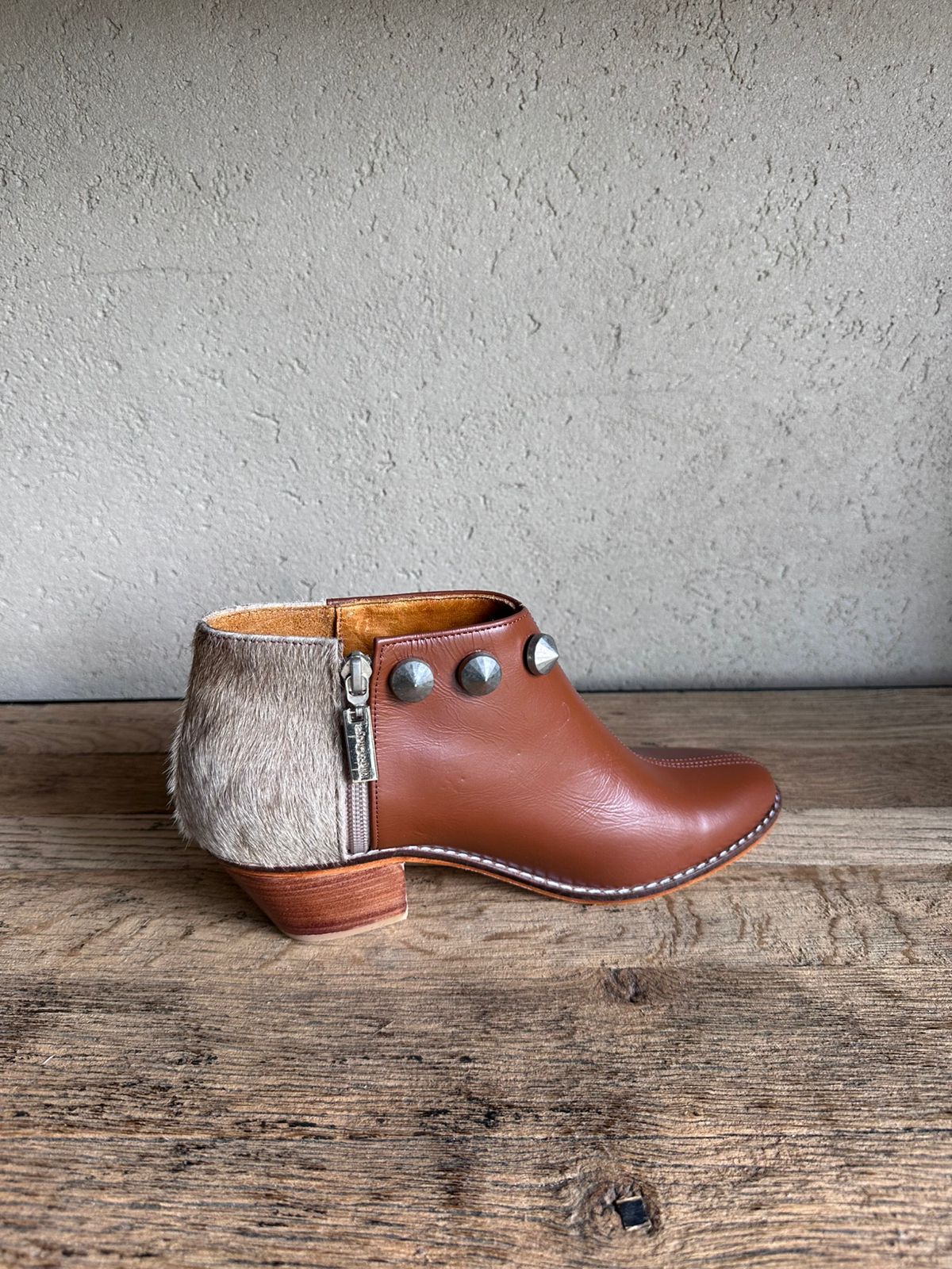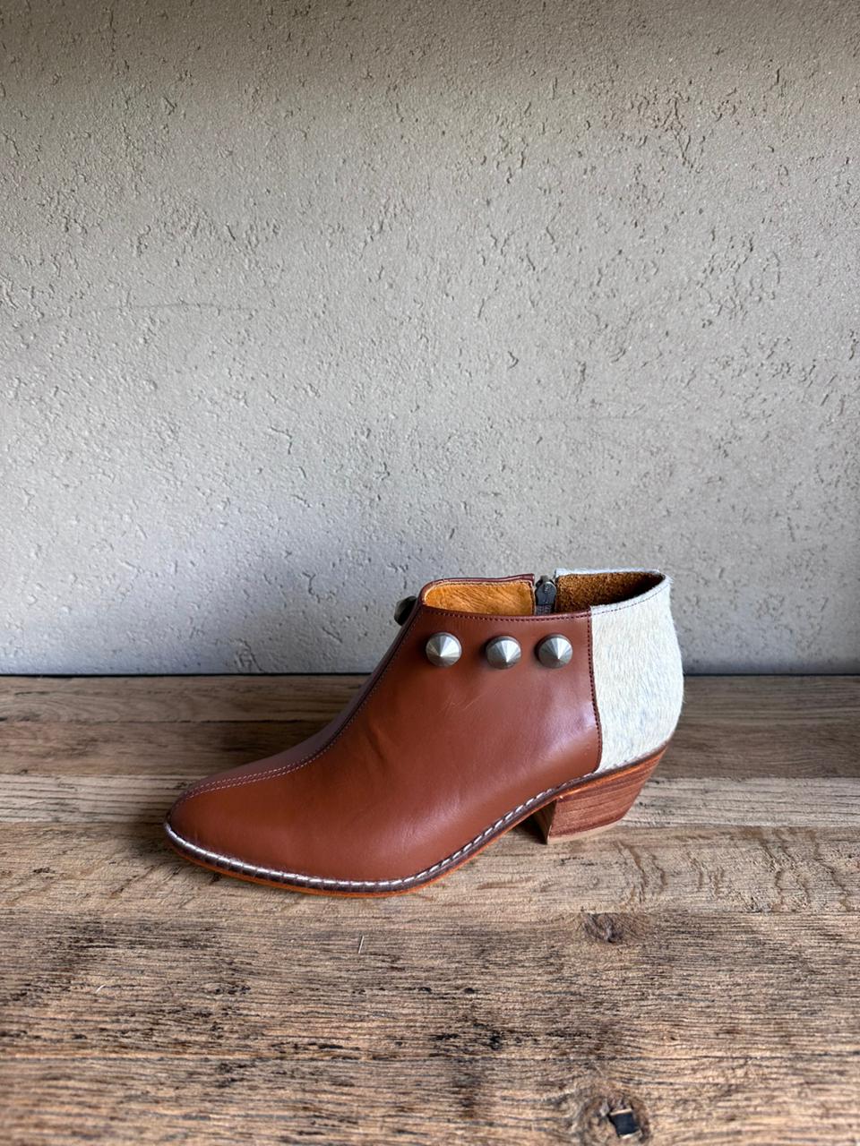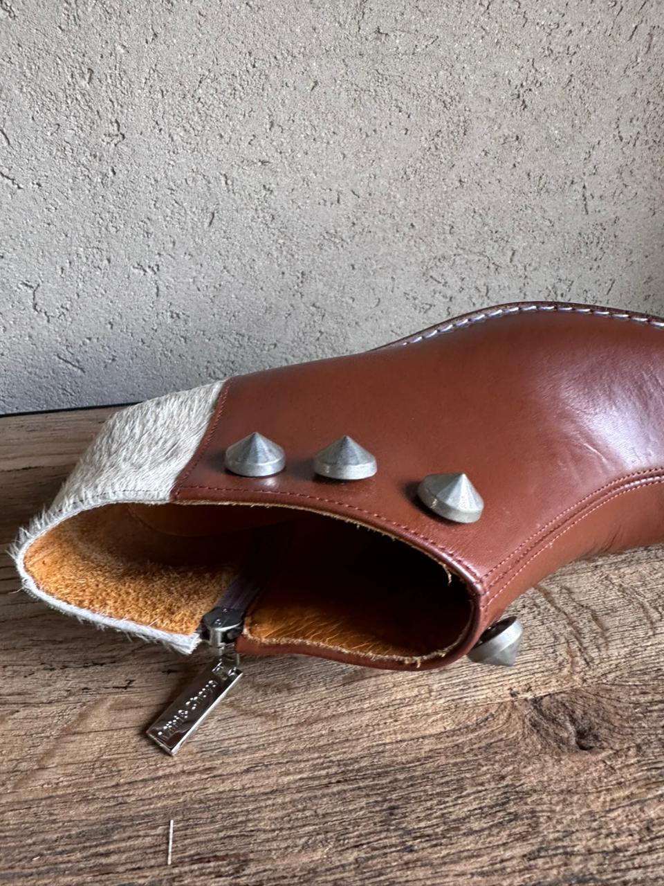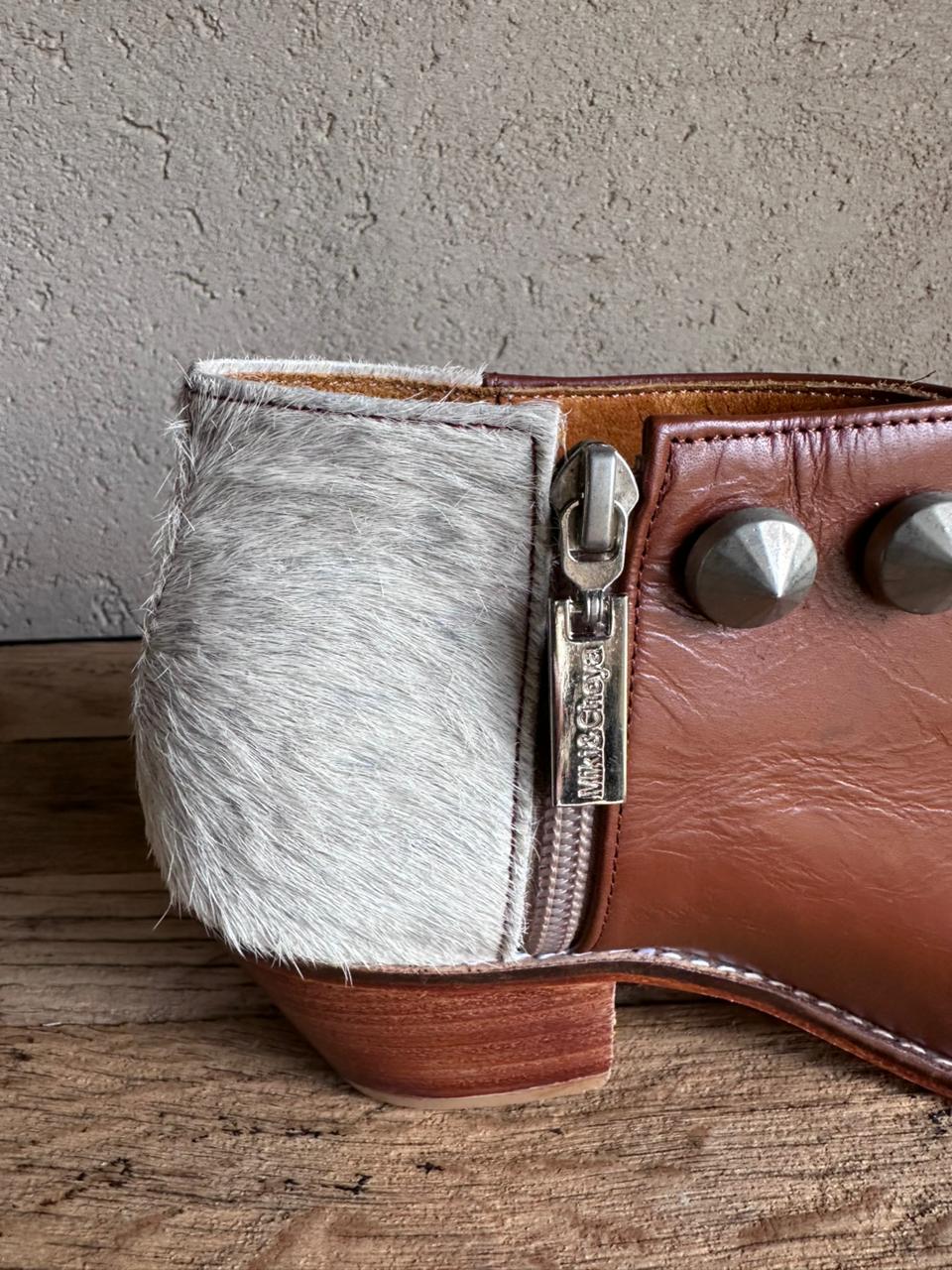 Botineta corta en cuero engrasado vegetal suela y pelo con tachas decorativas níquel